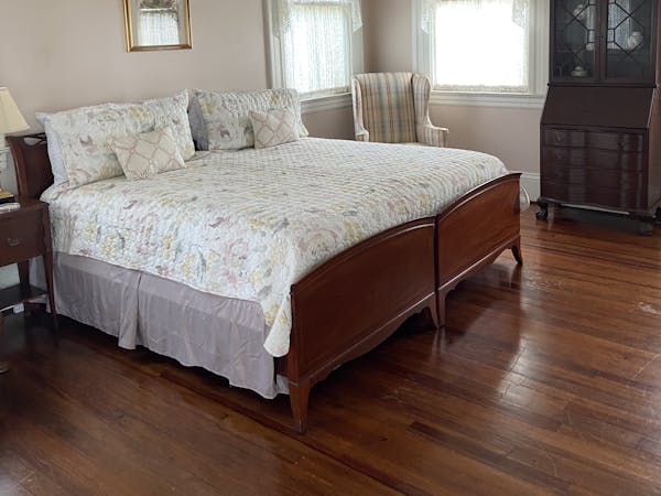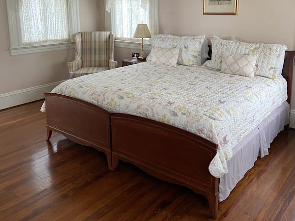 This king room appointed with beautiful antique furnishings features a jetted tub, first floor access and air conditioning. The favorite room of most of our guests books quite frequently. Don't delay if this is your choice of accommodations.